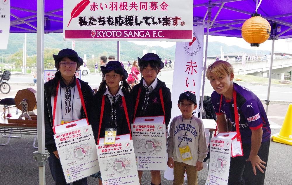 10月25日(土)京都サンガF.C.対鹿島アントラーズ戦にて街頭募金を実施しました。募金いただいた方にサイン入り色紙や京都サンガF.C.×共同募金のコラボステッカーがもらえるガラガラ抽選会を実施しました。福岡慎平選手にも募金活動にご協力いただき193,128円の募金が集まりました。集まった募金は亀岡の地域福祉の推進に使われます。ご協力いただきありがとうございました。